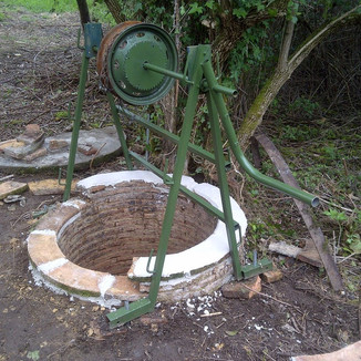 Le system étant simple , il est donc léger , environs 40 kg Je l'ai mis en place tout seul , c'est passé au poil de ^^ surélever du sol avec quelques morceau de tuile Ensuite j'ai percer les pieds et enfoncer des barres de 70cm dans le sol. Refixer des briques du puits a la chaux hydraulique puis un léger coulis sur les briques pour pouvoir mettre un couvercle en automne (pour que les feuilles ne tombe pas dedans) ou une protection anti morveux... ça tien très bien reste a trouver un chaine et un sceau en acier .