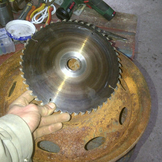 C'est la que le cerveau a commencé a fumé ! la roue , comment faire un truc qui dure , j'ai pensé au touret electrique , à un regard en béton , a faire une roue en palette.. bref des trucs chiant a mettre en œuvre. Donc je suis reparti refaire un tour de récupe. Et là j'ai vu une vielle jante que j'avais sorti du terrain. (je pense que c'etait une renault 4L ) Ni une ni 2 avec les coté de la jante qui font aussi de glissiére c'est impeccable. J e soude à l'intérieur de la jante , un cercle de métal pour réduire trou central et pour déporté la porté au plus vers l'extérieur (afin d'éviter le basculement) Puis de l'autre coté avec un disque de scie circulaire HS , je le soude aussi et voilà ma roue à 1mm pret au même diamètre que la barre J'enfille ma roue dans la barre , la barre dans les palliers. Je perce la barre au extérieur de l'ossature pour y mettre une goupille (afin d'éviter le déplacement horizontal) + rondelles. Pour la poignée , le dernier bout de barriere de sécurité récupérer,percer au diametre de la barre puis percer les 2 barres d'un coup pour y mettre une goupille. Pour le final je soude délicatement la roue à la barre