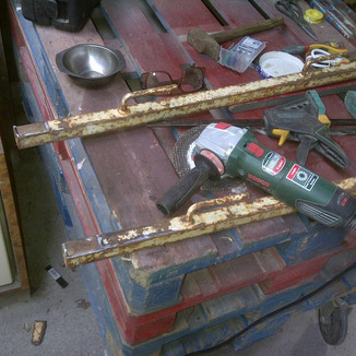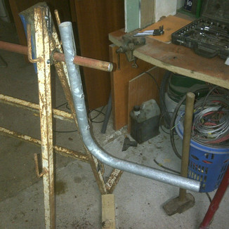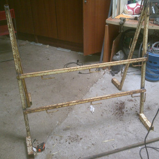 Après avoir fait 5 fois le tour de tout les métaux que j'avais. c'est toujours dur de choisir , car si on utilise ça , on ne l'utilisera plu plus tard :) bref.. Je trouve 6 barres carré de 1M20 de haut avec des pieds parfait ! , aprés quelques coup de meuleuse et de soudure à l'arc. l'ossature est faite ,