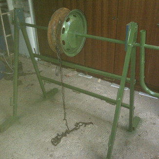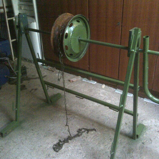 Voilà pour le final Pour la chaine , je n'en n'avais pas , mais je vais bien en trouvé une sur la prochaine brocante , le trou de valve sur la jante et impeccable pour fixer la chaine a l'aide d'un boulon rondelle. Le puit étant en pleine cambrousse , le métal rouillera tot ou tard. Donc je n'ai pas fait les choses dans les règles de l'art. un coup de brosse metalique sur toute la feraille un cou de chiffon sur toute la ferraille et mise en peinture. Demain je passerai un coup de vernis aérosol. et ça tiendra au minimum 20ans (sauf peinture et palier) Prix : -métal ( récup' ) -6 baguette de soudure 2.5mm. 2euros -20% d'usure , d'un disque métal. 2euros -une bombe de peinture 4euros -4 visses /boulon / rondelle (récup') Voilà un bon dimanche fini ;)